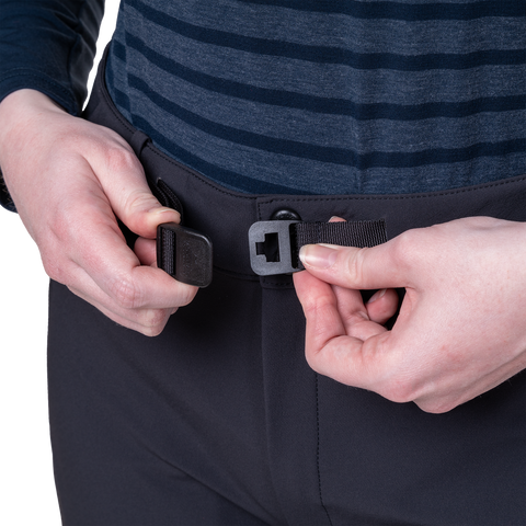 • Integrated low-profile belt sits neatly under a pack or climbing harness