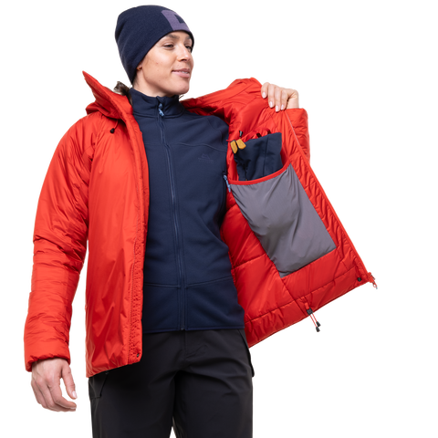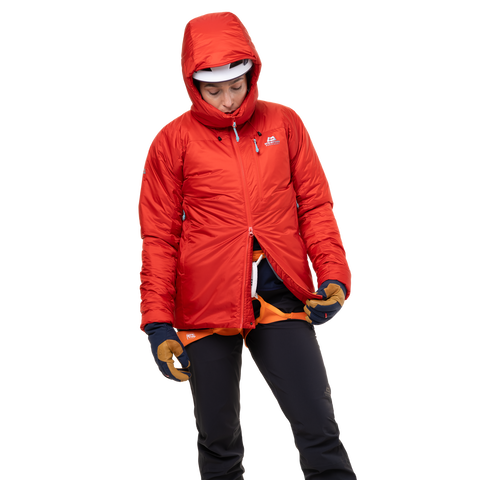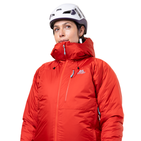 Extensive testing has shown us that PrimaLoftⓇ Gold Hi-Loft Ultra insulation with Cross Core™ aerogel technology is the best synthetic fill currently available for this application, highly thermally efficient even when wet, fast drying and resilient in the face of constant packing and unpacking, it remains mobile enough for seconding steep pitches of climbing and wearing for long periods. With 120g/m2 PrimaLoftⓇ used through both the body and arms, the Alpamayo is actually slightly warmer than its men’s equivalent, the Fitzroy.