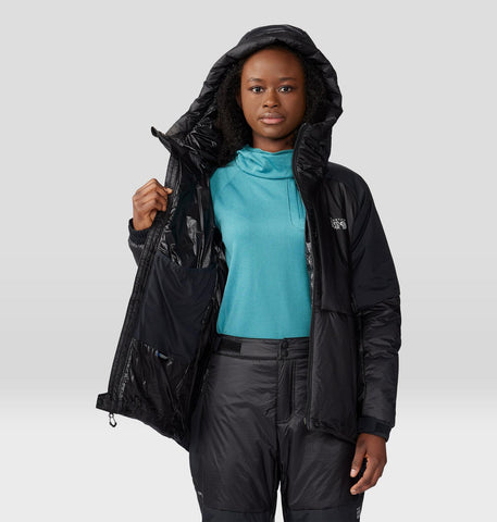 • Helmet-compatible insulated hood with three-way drawcord adjustment