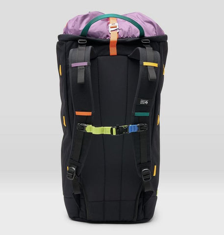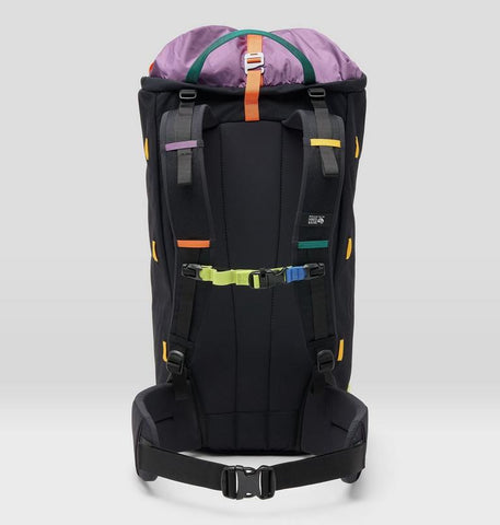 - Tuck-away storm flap secures a rope, helmet, and other