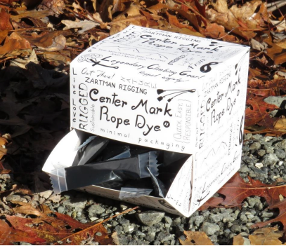 These single-use packets are filled with enough rope-safe dye to thoroughly mark a rope’s center. Masking the area to be marked is recommended. Best not do it over the living room carpet.