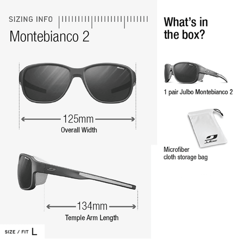 Redesigned and refined, the new Montebianco 2 adds to the lineage of glacier sunglasses that are perfect for forays from the valley bottom all the way into the alpine. New to this classic glacier sunglass are larger and removable side shields, as well as new Grip Tech temples and Nose grip, which are shock-absorbing inserts designed to keep your glacier glasses on your face where you need them, no matter the activity.