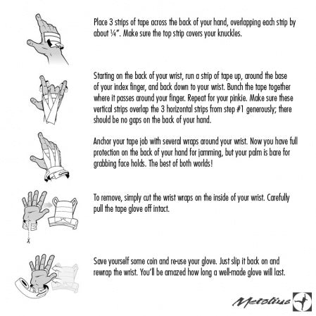 Cotton polyester blend athletic tape. Includes illustrated, step-by-step taping instructions. Be sure to check out the video links above for instructions on taping for split finger tips and climbing hand cracks.
