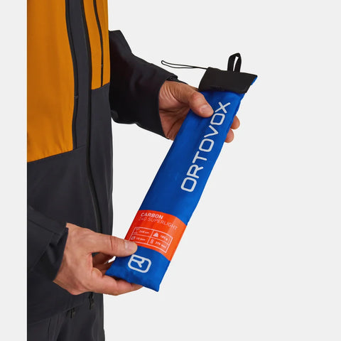 Weighing just 185g, the CARBON 240 SUPERLIGHT is our lightest probe. This 240cm-long probe can be quickly and easily assembled by means of its quick-lock assembly system. It is thus ready for use in just seconds, and can be folded up just as quickly. The tension can be easily and quickly set by turning the optimized adjusting screw. The large probe tip, which has a significantly larger diameter compared to the probe elements, ensures improved penetration. We have also optimized the probe segments so that they now have a more compact pack size. The CARBON 240 SUPERLIGHT will easily fit into your tour backpack.